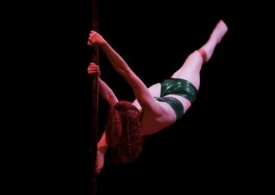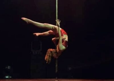 La Pole Dance est un sport très complet liant souplesse, force, danse et contorsion sur une barre verticale pouvant tourner (spinning) ou non (statique).